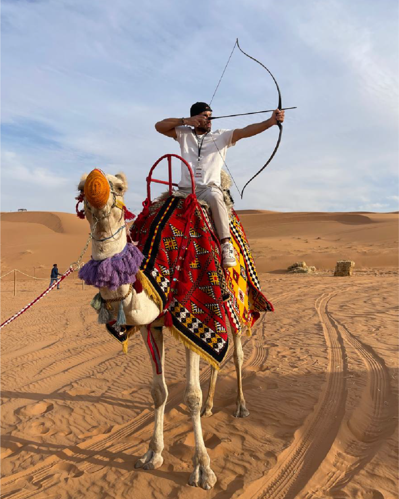 6:45 مساءً: المشاركة في أنشطة مثيرة مثل الرماية بالأسهم والبنادق الهوائية وركوب الخيل والجمل والملاعب الرملية.