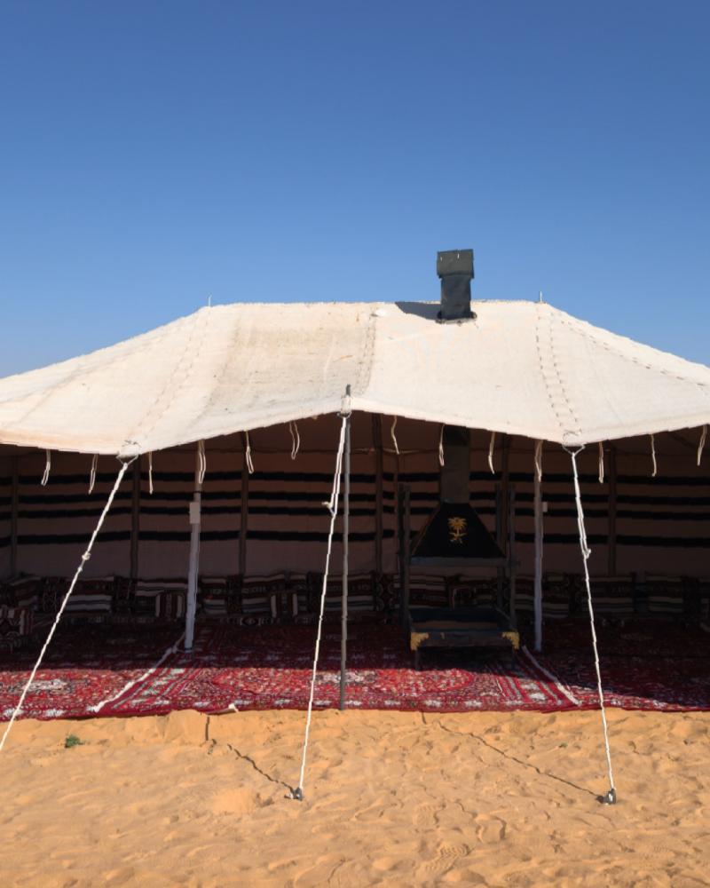 المخيم يتضمن : بيت شعر – خيمة – جلسة خارجية – مشب نار – دورة مياه - مطبخ مع )ضيافة سعودية مجانية
