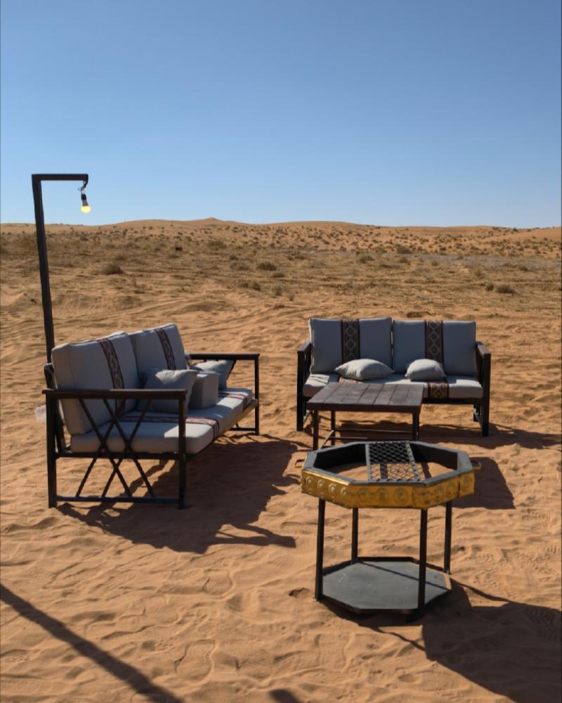 تجربة مثالية للعائلات الباحثة عن أجواء البساطة والراحة في قلب الرمال الحمراء، مع تجهيزات متكاملة ومساحة مريحة تتسع للعائلة بجلسة خارجية.